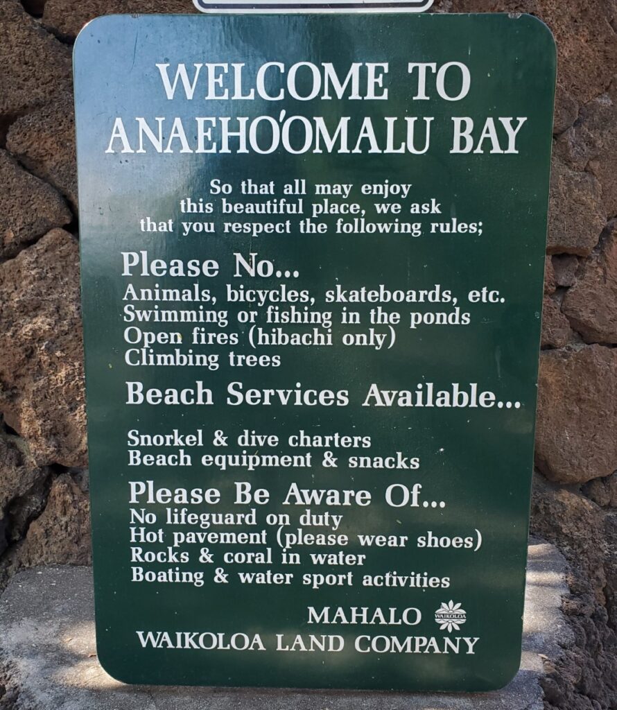 A Bay Beach is so named because pronouncing the real name, ‘Anaehoʻomalu Beach, is difficult without lots of practice. This is a popular place because parking is free and abundant (unlike most resort beaches in the area) and because it’s a pretty special beach.