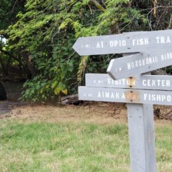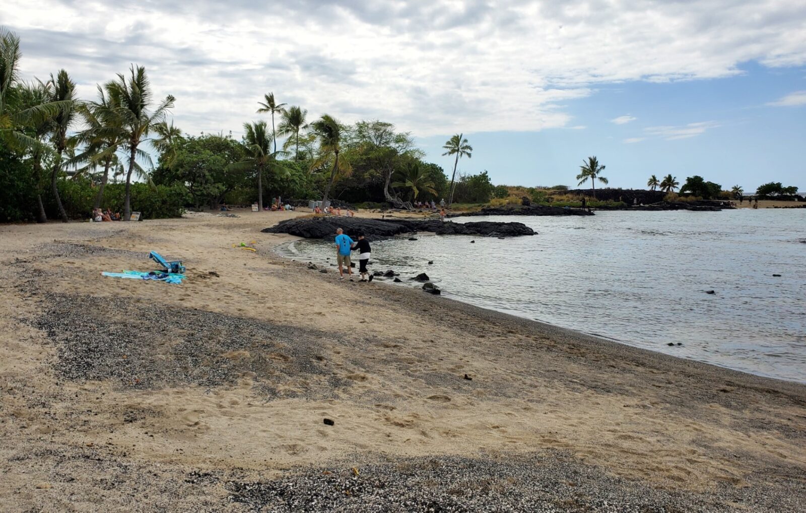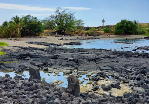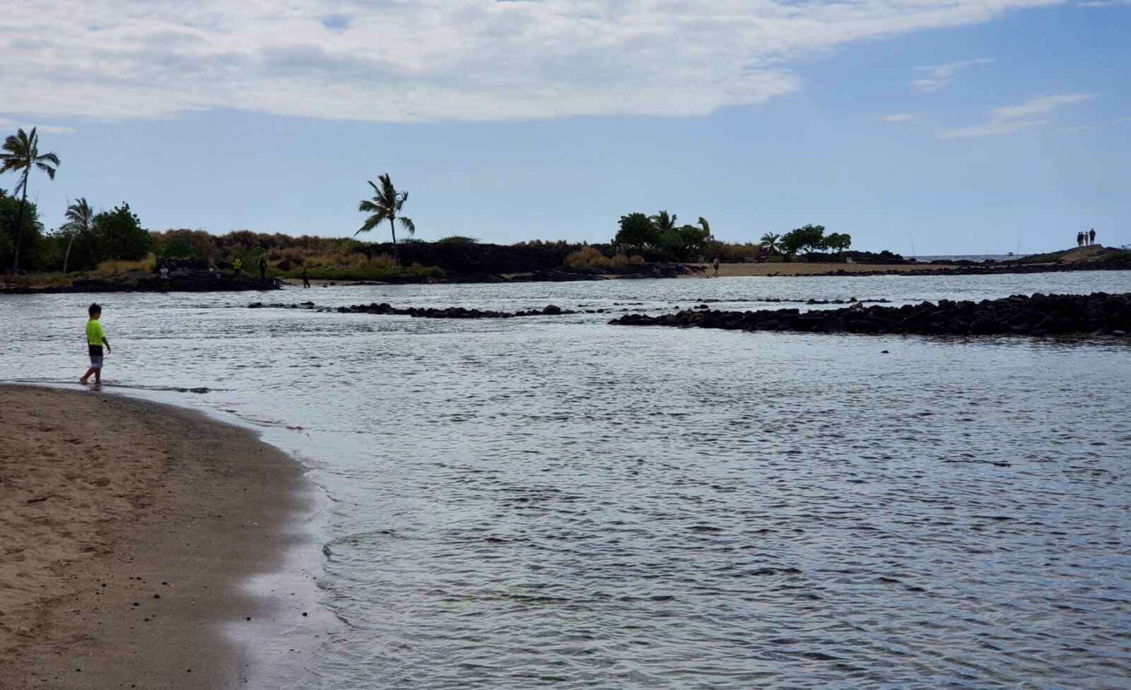 ‘Ai’opio Fishtrap was once used to capture fish that entered the walled off area during high tides. Now it’s a great place for kids and adults to safely play in the saltwater. The shore in this area is mostly lava rocks, but you’ll find abundant sand near the shore for sunbathing.