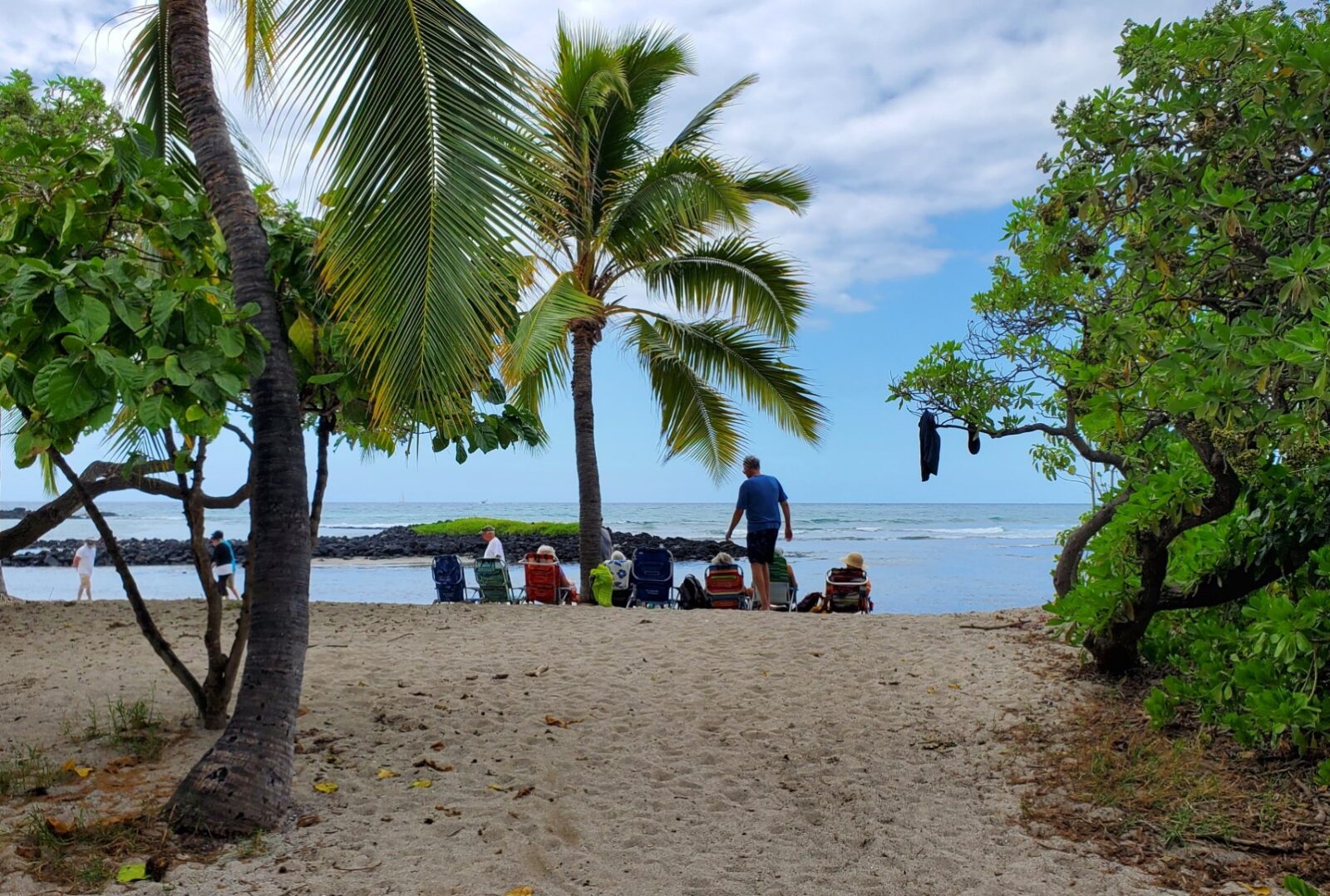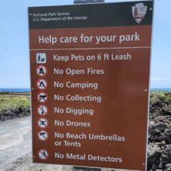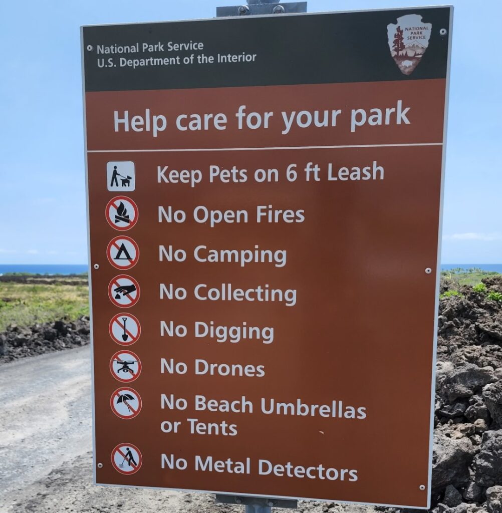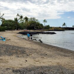 The best access to Aiopio Beach is from the Honokohau Marina and Small Boat Harbor north of Kailua-Kona. Just take the first right after you enter the harbor and park past the restaurants in the northwest corner of the lot (next to the Kona Sailing Club). There you’ll see a sign welcoming you into the national park. You can also get to Aiopio Beach from the main parking lot at the national park visitor center off Highway 19. From that lot it’s a pleasant one-mile long walk each way. Note that the main parking lot closes at 4:30pm and the harbor lot stays open late.