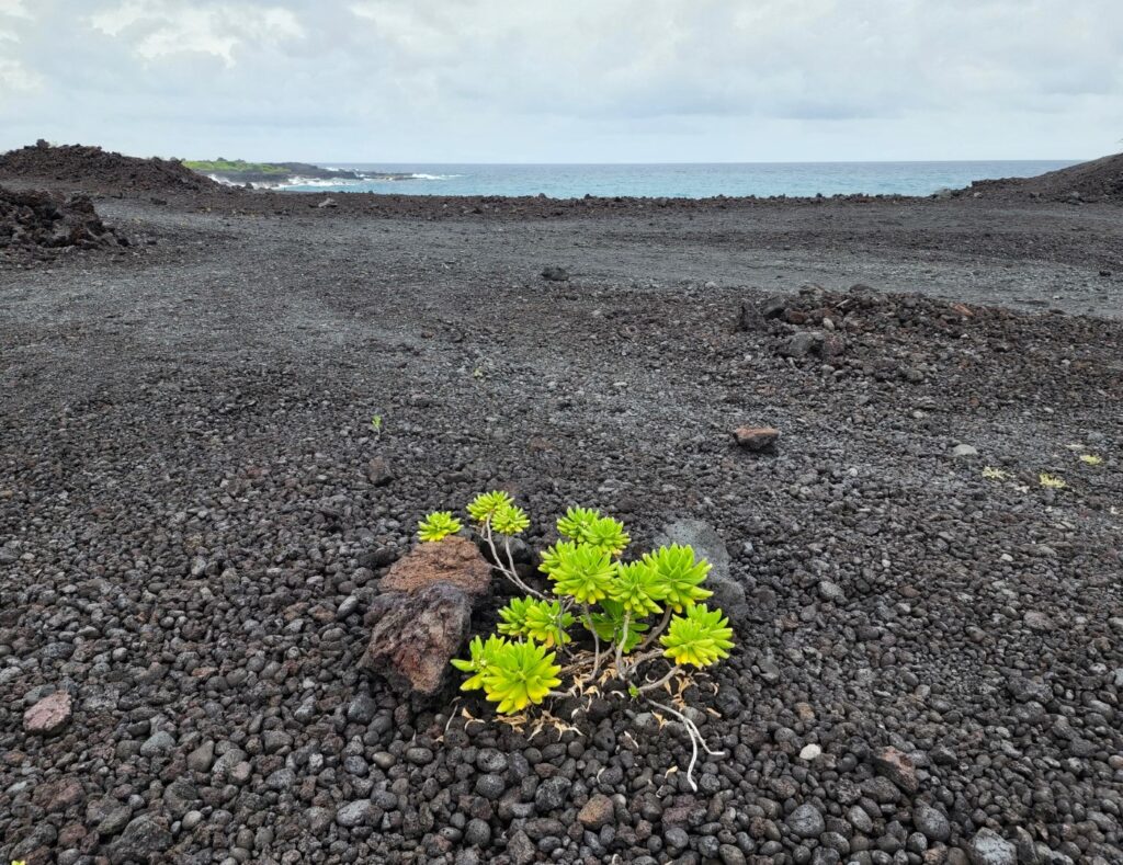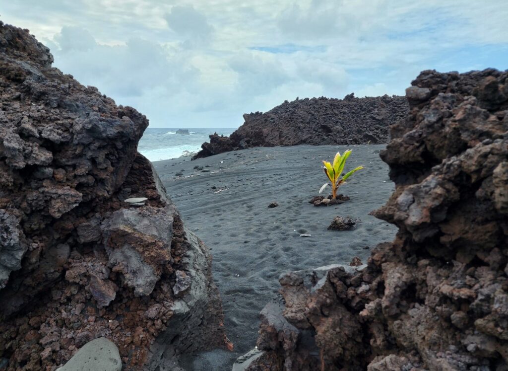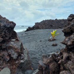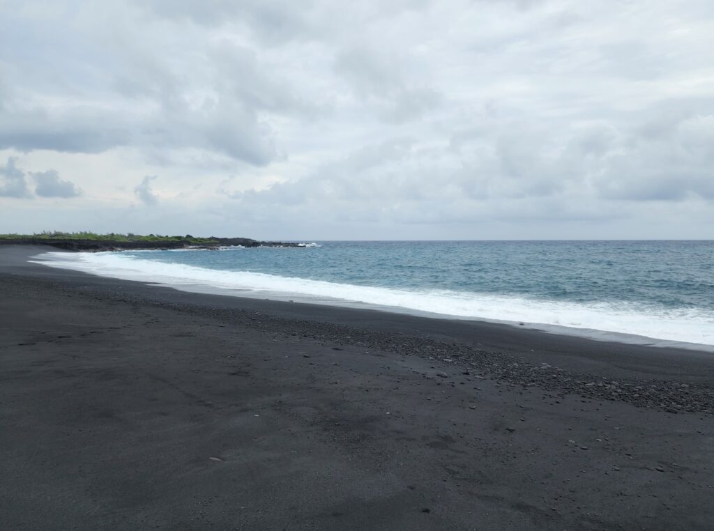 The black sand beach at Cape Kumukahi has formed since the 2018 lava flow in an area that was mostly a jagged lava rock shoreline. This new east-facing beach is about one-third mile long and has no shade. The old gravel roads directly behind the beach still remain, but the access to those roads were covered up therefore making it a “hike-in only” beach until the state replaces the vehicle access.