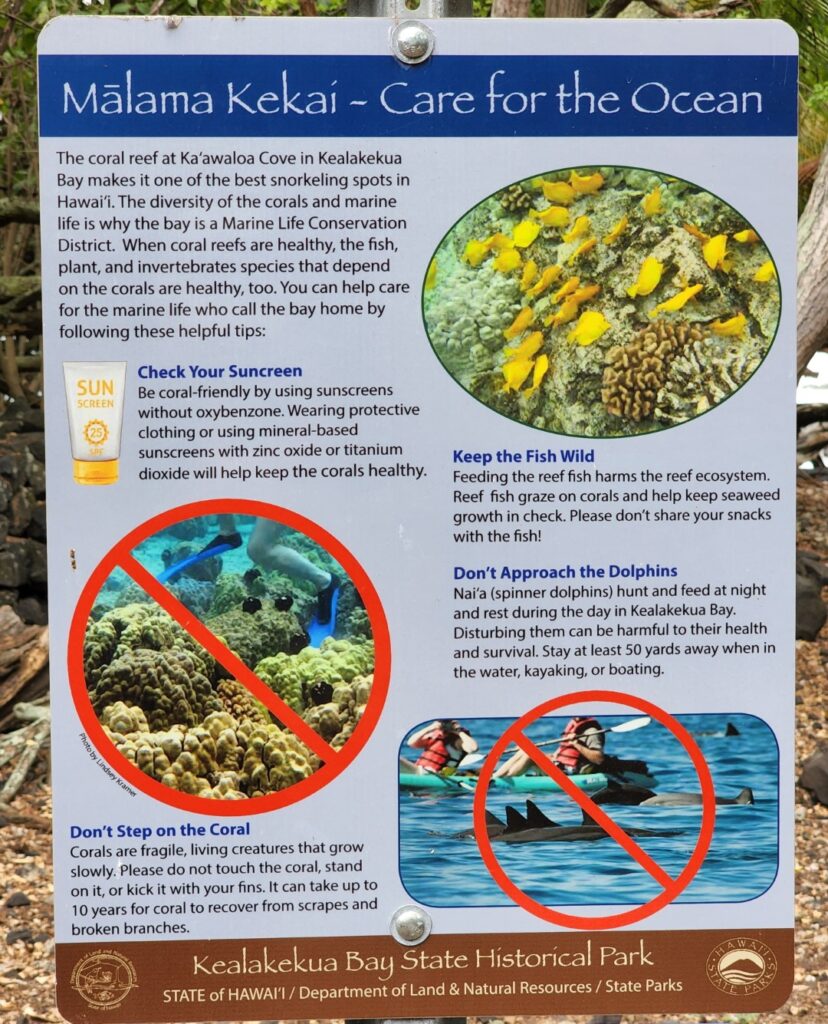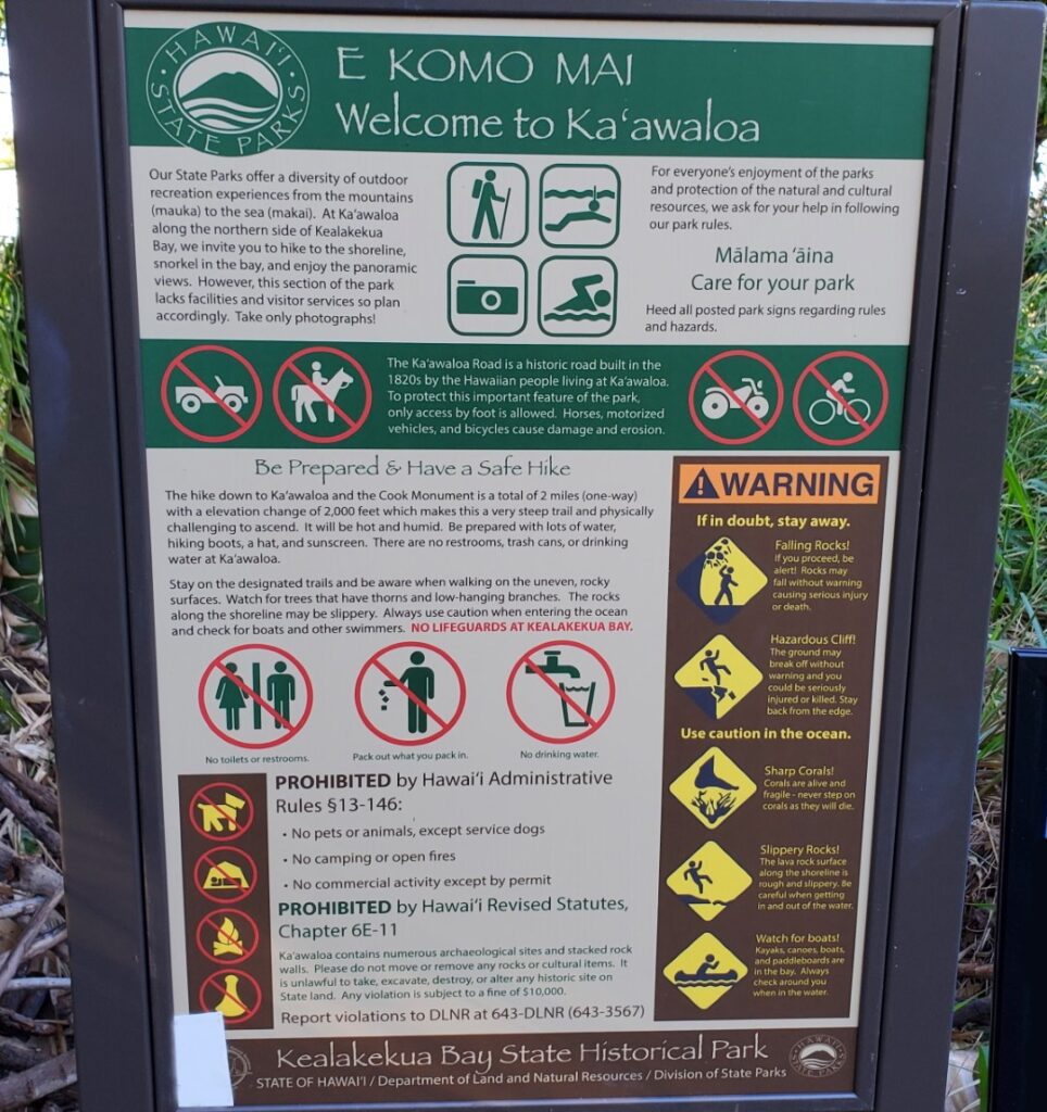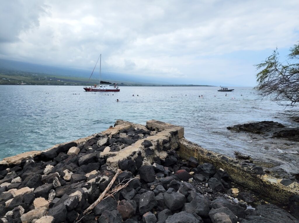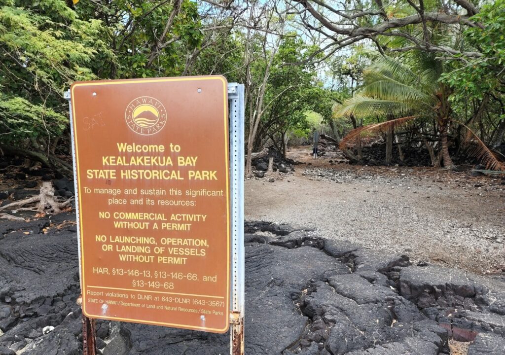If you want to kayak to this spot, you have to have a special permit and launch from the Napo’opo’o Beach area with certified rental companies who can give you permission to kayak on the bay. It’s better to research this online and book the kayaks days ahead. Spinner dolphins are very common in this bay so kayaking is one of the best ways to see the bay and the monument. Be sure to keep a significant distance from dolphins if you spot them (150 feet minimum). If you kayak to the monument you are not supposed to land the kayak or go to shore.