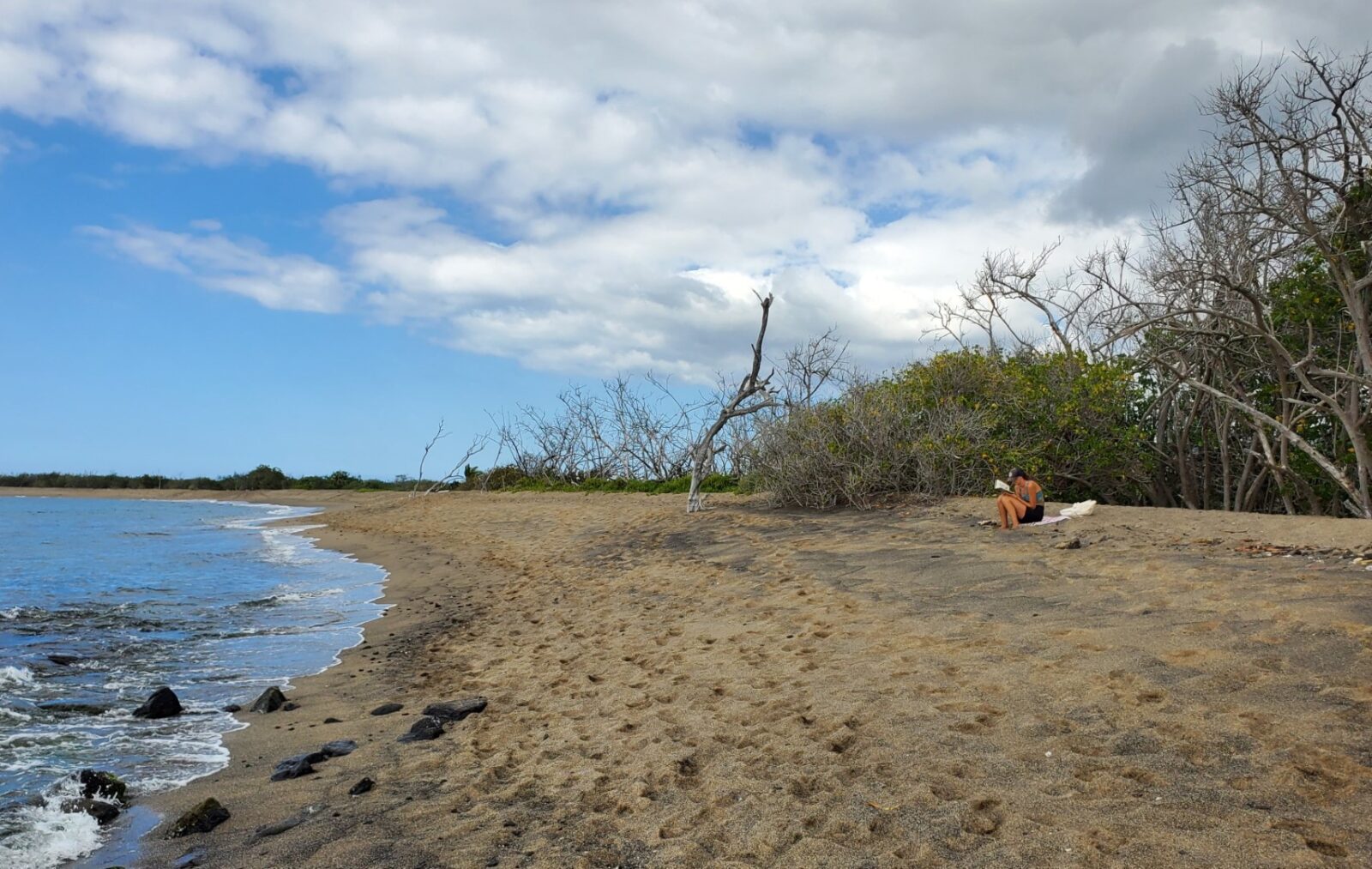 The fishpond behind the beach is large and feels more like a lake. It’s surrounded by lush vegetation, but the south end isn’t very attractive as there is unsightly items laying around. Look for birds in and around the pond.