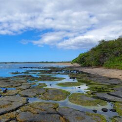 The fishpond behind the beach is large and feels more like a lake. It’s surrounded by lush vegetation, but the south end isn’t very attractive as there is unsightly items laying around. Look for birds in and around the pond.