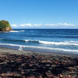 To find Honolii Beach Park, drive north from Hilo on the Belt Road (Hwy 19) and turn right onto Nahala Street. Then turn left at the T intersection onto Kahoa Street which leads to the park in a short distance (no parking lot). If it’s a busy day you should take the first parking spot along the road shoulder that you can find. This road is narrow so it’s kind of a one-way street and turning around is difficult too.