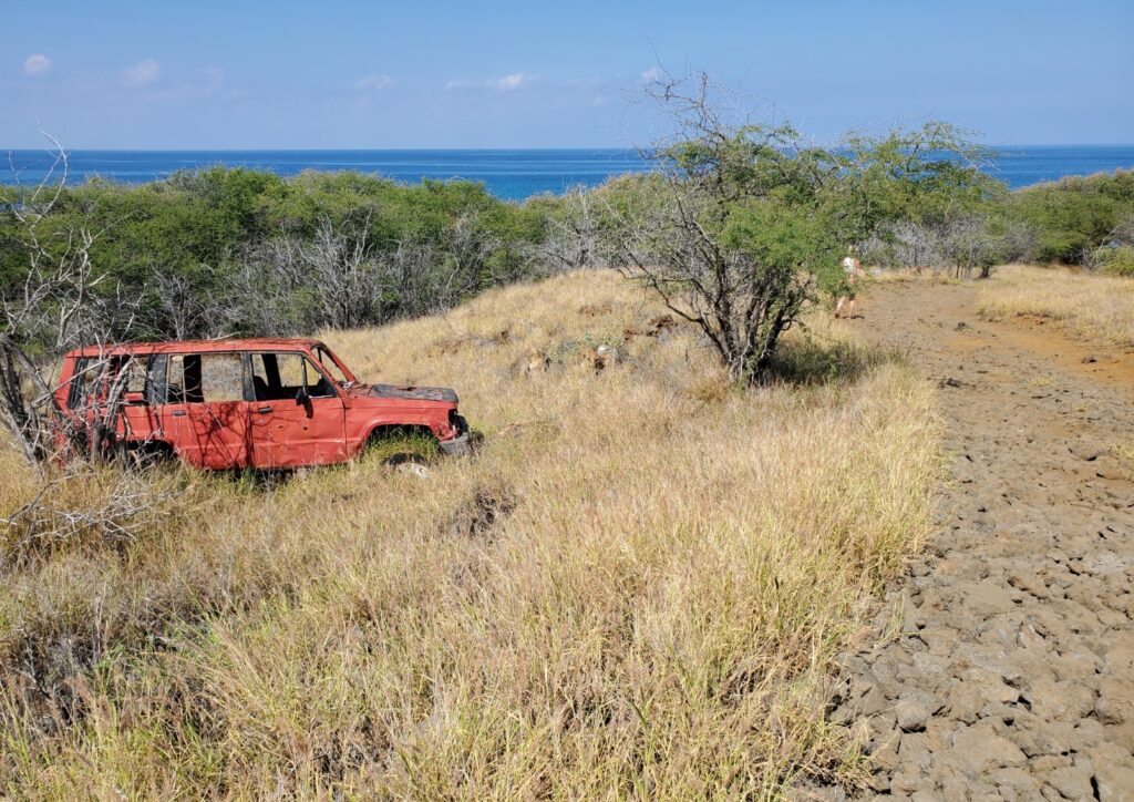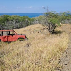 If you want to drive the 4×4 road, look for the first road south of the Kua Bay Access Road. When you get to the first intersection go left (the right fork goes up to the top of Puu Kuili). At the second intersection go right for Kahoiawa Bay. The crux point in the drive is where it splits into four different options which are all rated double diamond. It’s possible you might get down one in a Jeep, but getting back up is another story. Walking is faster than driving so it’s not worth the risk of trying to get your rig to the shore and risking damage or requiring a rescue.