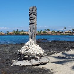 The walk to Kona Village Beach is about one-third mile from the Four Seasons Beach depending on where you start at that long beach. It gets progressively quieter as you walk north along the shore. You’ll pass by an old wooden tiki perched on a lava plateau along the shore. After that you have reached the Kona Village Beach. The north end is better for getting into the water, but there are no lifeguards and no facilities at this beach currently.