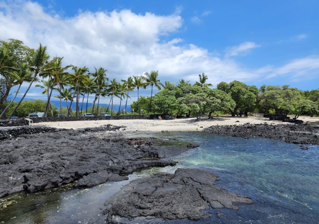 Kaloko Fishpond is an historic coastal site and ideal hiking destination near Kailua-Kona. The pond and the land around it are part of Kaloko-Honokohau National Historic Park and are accessed from a separate road than the main park entrance. For this reason it gets less visitation, but it should get more. This is a superb place to walk and see historic sights. The small beach near the fishpond isn’t great for swimming or sunbathing. This portion of the park is mostly black lava rock, but there is a sandy path along the shore in most places.