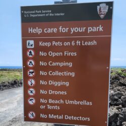 If you want to hike around to the north side of the fishpond, walk back out the road for a quarter mile to a signed entrance to the Ala Kahakai Coastal Trail. Once on the trail, it’s just under a mile of walking through lava fields to reach the shore again. From there you can walk southward to the north edge of the pond or walk northward to Kohanaiki Beach Park. From the parking lot you can walk southward on the Coastal Trail to other parts of the national park including Honokohau Beach in front of Aimakapa Fishpond.