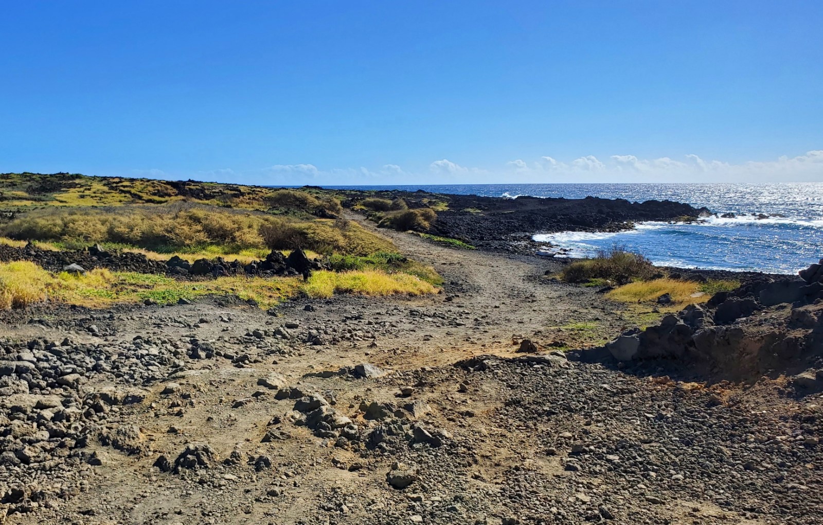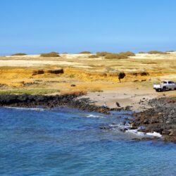 The parking area for the boat ramp is about a quarter-mile east of the end of South Point Road and next to the former military airbase known as Morse Field. From that parking lot, which is the same parking area for those hiking to Green Sand Beach, it’s just a 0.2 mile drive straight toward the ocean to the boat ramp. This short distance is worth walking if you don’t have a 4×4 vehicle. It’s easy to get onto the wrong track and then it’s difficult to get turned around or unstuck if you don’t have a vehicle with good clearance and traction.