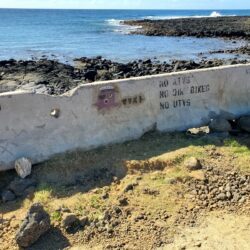 Countless 4×4 roads and trails follow the shoreline in this area if you want to explore. South Point is almost a mile to the west and Papakolea Green Sand Beach is about two miles to the east. A short hike of just a half-mile eastward leads to a rock wall that ends at the ocean. This historic wall is 2.5 miles long and forces all the roads to pass through one point next to the water.