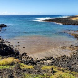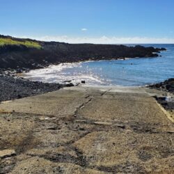 The Kaulana Boat Ramp is down South Point Road at the southern tip of the Big Island. It provides boaters and others a relatively calm access to the ocean in this area where the surf is usually rough. Swimming and snorkeling is possible in this tiny cove but you’ll need to watch for boats launching and returning. Just note that currents are strong in the area so don’t venture out near the end of the cove.