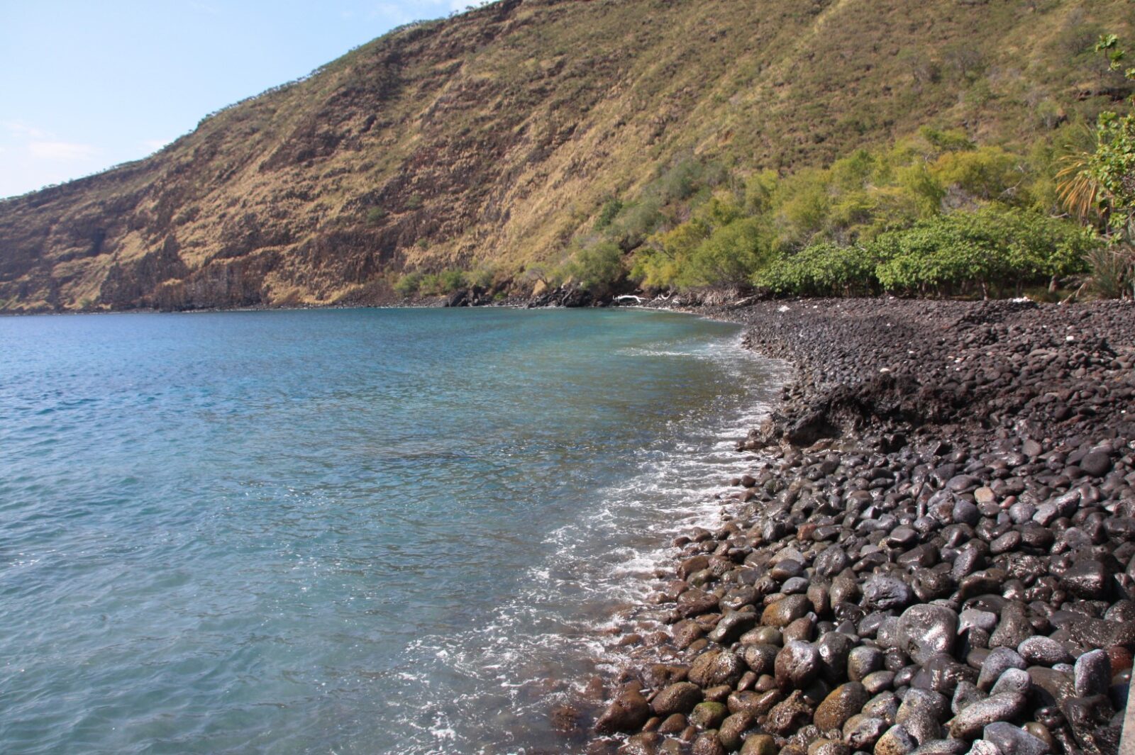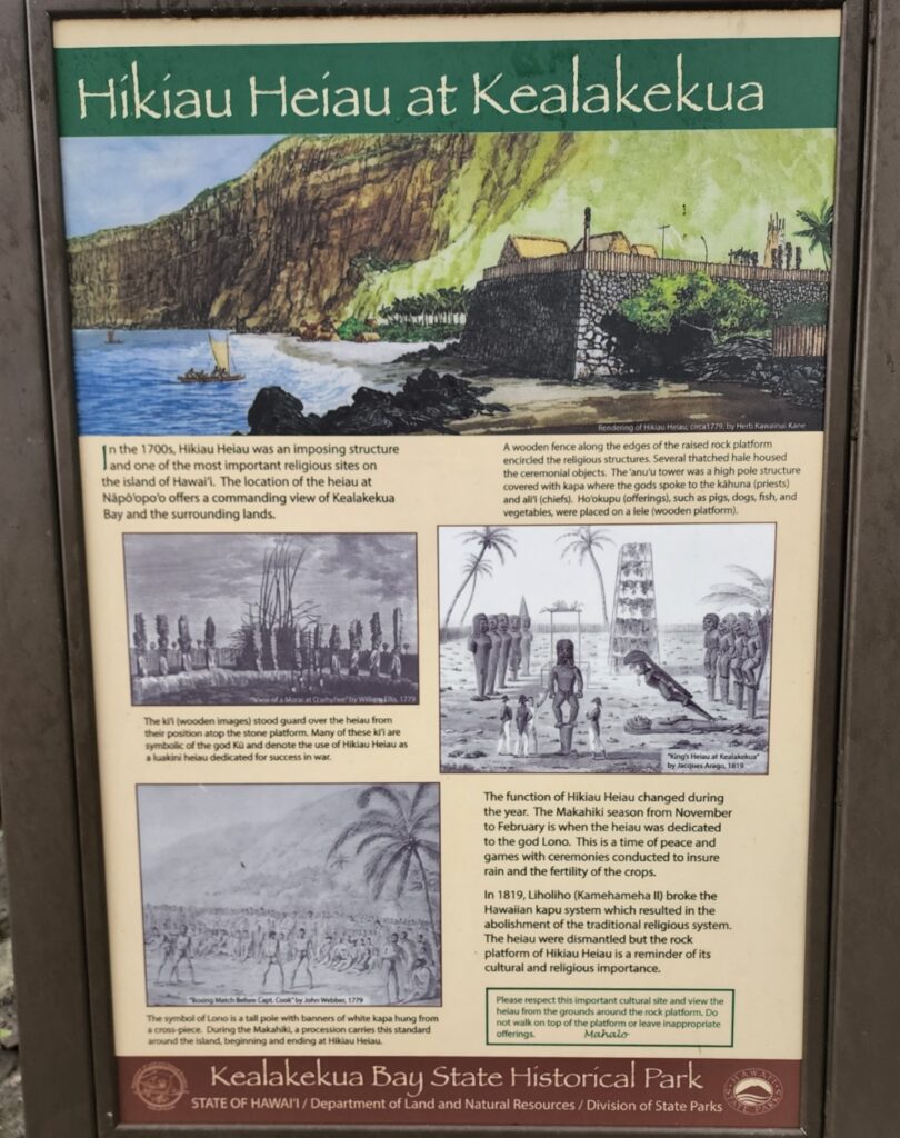 Hikiau Heiau, an historic Hawaiian temple, is right next to Napo’opo’o Beach. Visitors can no longer enter and walk around on this massive structure, but it’s easy to see it from outside. Napo’opo’o Beach and Hikiau Heiau are part of Kealakekua Bay State Historical Park.