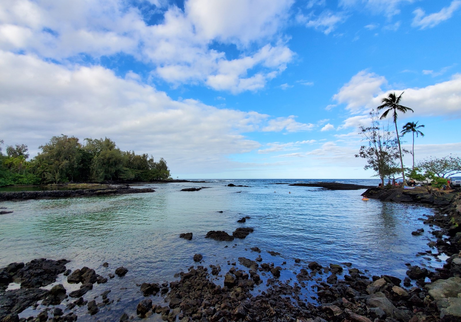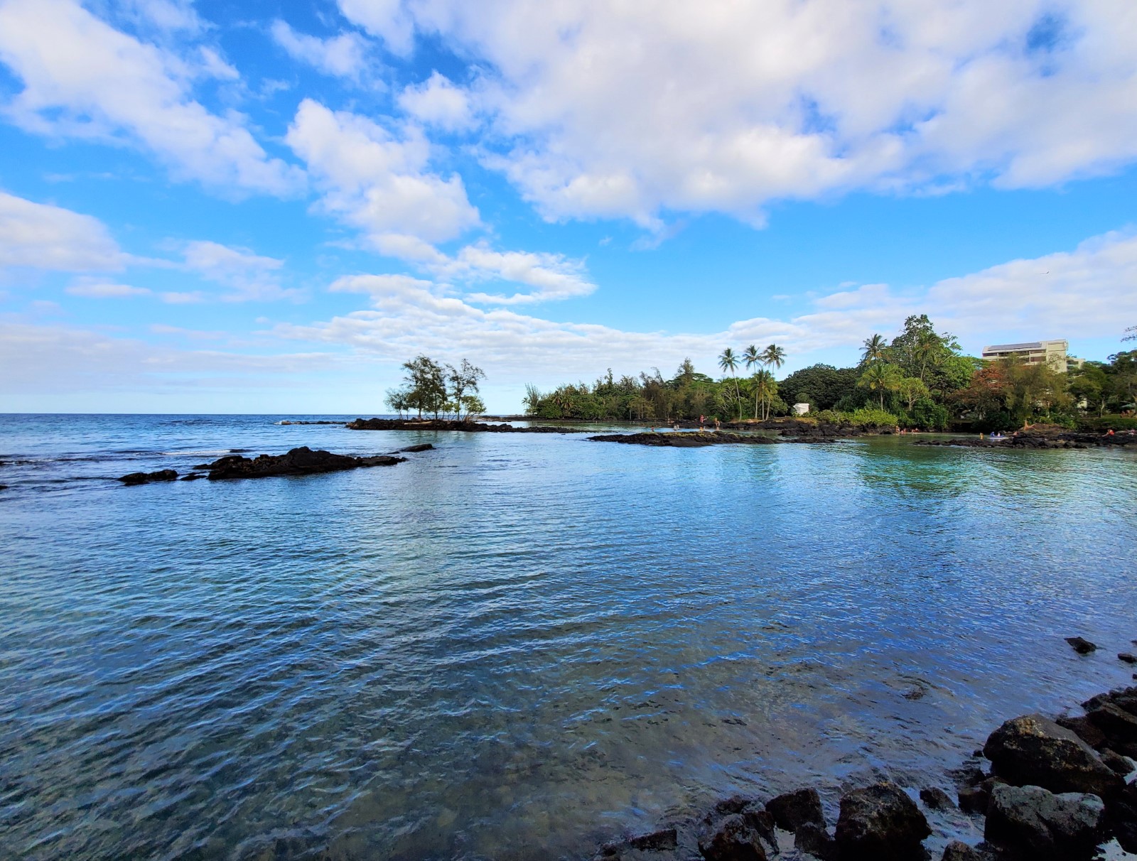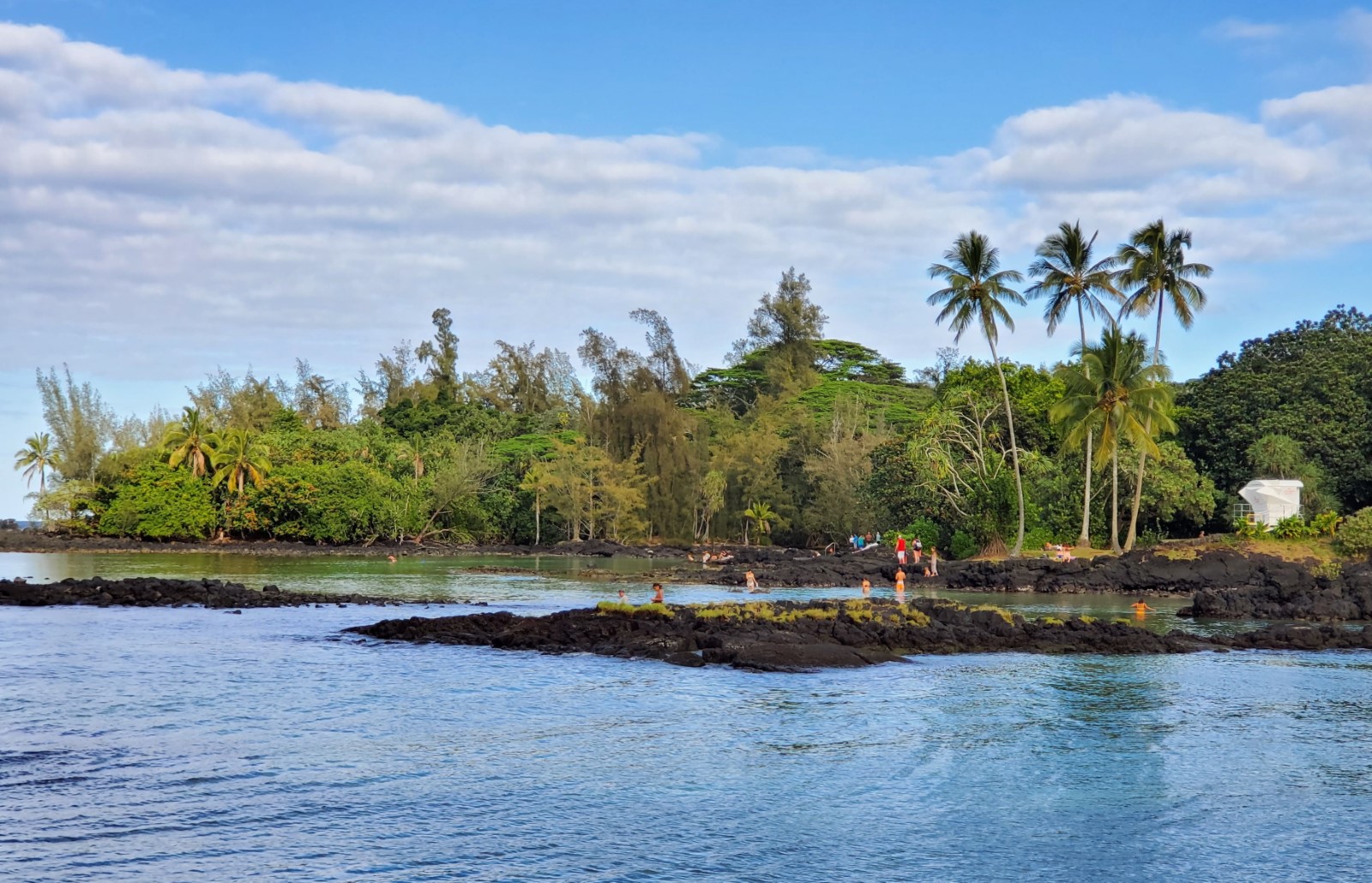 Onekahakaha Beach Park is a popular place for families in Hilo. Swimming, picnicking, tossing a football, and even horseshoes...