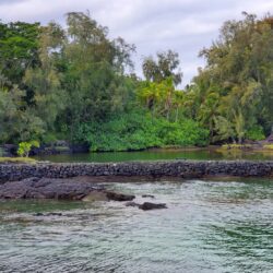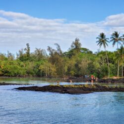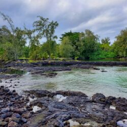 Kealoha Beach Park in Hilo is a popular local gathering spot especially in the evenings. If you are not a local, you might feel out of place here at times. There are countless spots for sitting on rock walls and smooth pahoehoe lava all along the park’s shore. A large grassy area with picnic tables and shade is provided too.