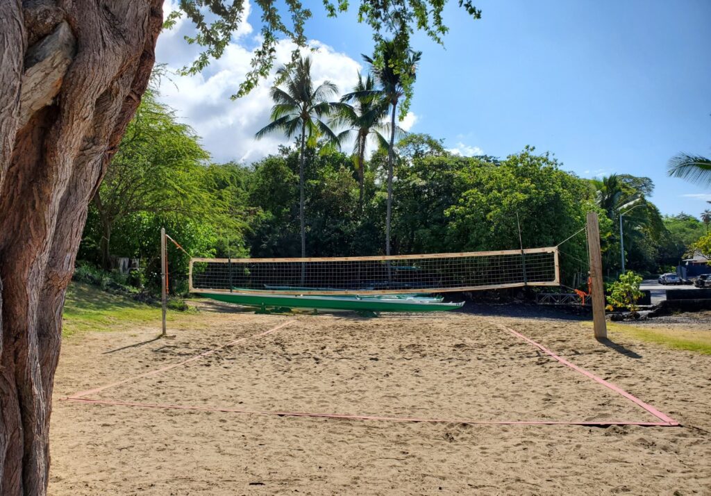 There are several ways to get into the water of Keauhou Bay. The park has a stairway into the water and there’s a hand-carried boat ramp where the local outrigger canoe club, Keauhou Canoe Club, can launch their crafts. There’s also a public sandy beach on the north side which is adjacent to a private park called Ka’ili’ilinehe Beach Park. If you have a big boat to launch there’s a spot for you too (access via Kaleiopapa St).