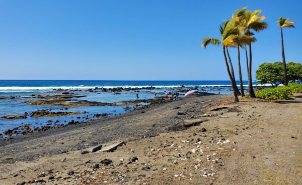 Keauhou Bay Beach Park is a modest park on Keauhou Harbor that get’s little attention. It’s a great place to start a walk or get into the water. Interpretive signs along a walking path here explain the history of this bay including the birthplace of King Kamehameha III.