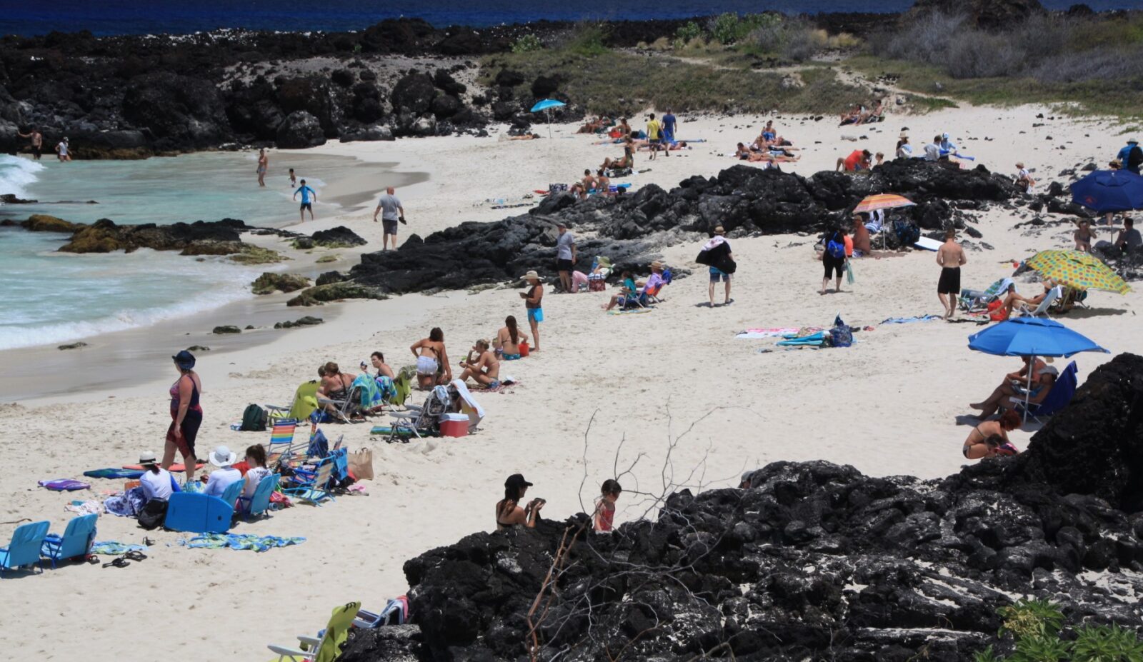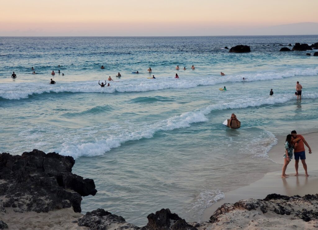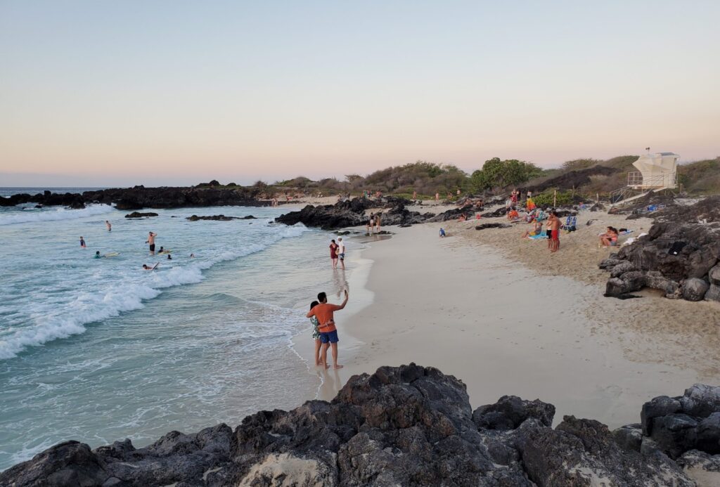 The parking lot for Kua Bay is larger than most in the area and can accommodate 100 or more cars if you include shoulder spots up the entrance road. It’s also a superb place to watch sunsets so expect this place to be hopping in the evenings too. In general this beach is a good mix of locals and tourists.
