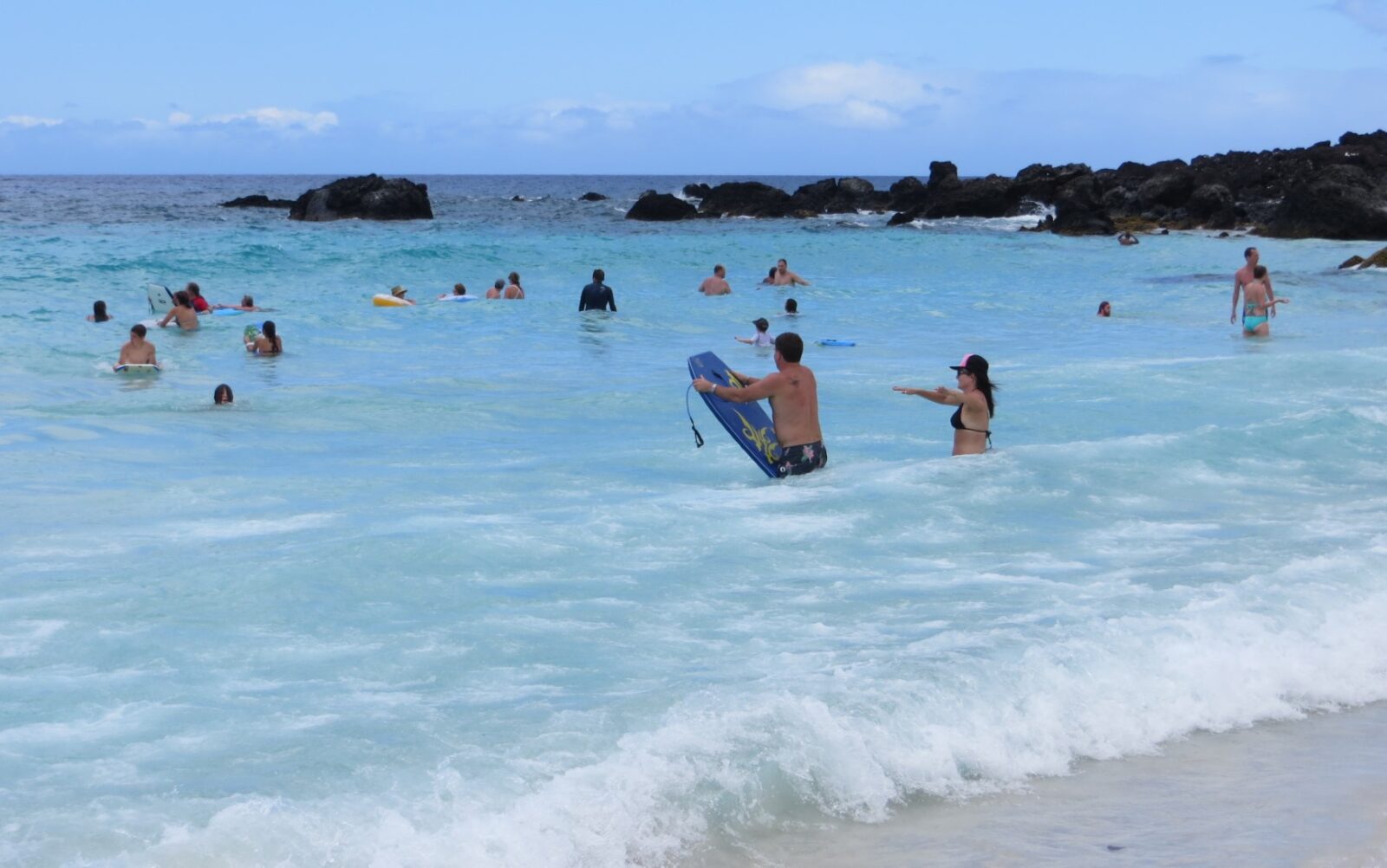 Kua is probably the best boogie boarding on the big island. the local boys are crazy but there are tourist families playing in the waves too. It’s kinda nuts.