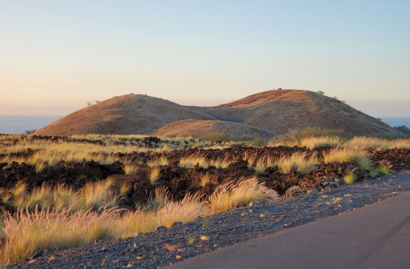 If you are into hiking, you might have noticed the red volcanic cinder cone, Pu’u Kuili, on the left along the entrance road. There’s a parking lot on the makai side (toward the ocean) of the cone where you can park and hike to the top of it. The summit is an amazing place to watch the sunset!