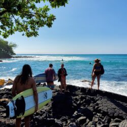 Lyman’s is a popular surf spot especially in the winter months when the swells are stronger. When surf’s up (typically October through April), the local surfers will be riding the left-hand wave that breaks around Kamoa Point. Even if you aren’t a surfer, it’s fun to sit on the rocks and watch them. An interesting note about this spot is that King Kamehameha The First learned to surf on this point break in Holualoa Bay.