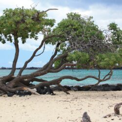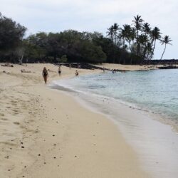 Red House Beach is on Mahaiula Bay which is a picturesque spot to say the least. Trees behind the beach provide shade so you can stay all day without packing a beach umbrella. The abandoned red house and the two outbuildings are part of the state park property, but they are blocked off to avoid entry. At the far north end of Red House Beach there’s a cluster of tall palm trees and another tiny pocket of sand. A trail goes north from those trees and takes folks to the next beach, Makalawena.