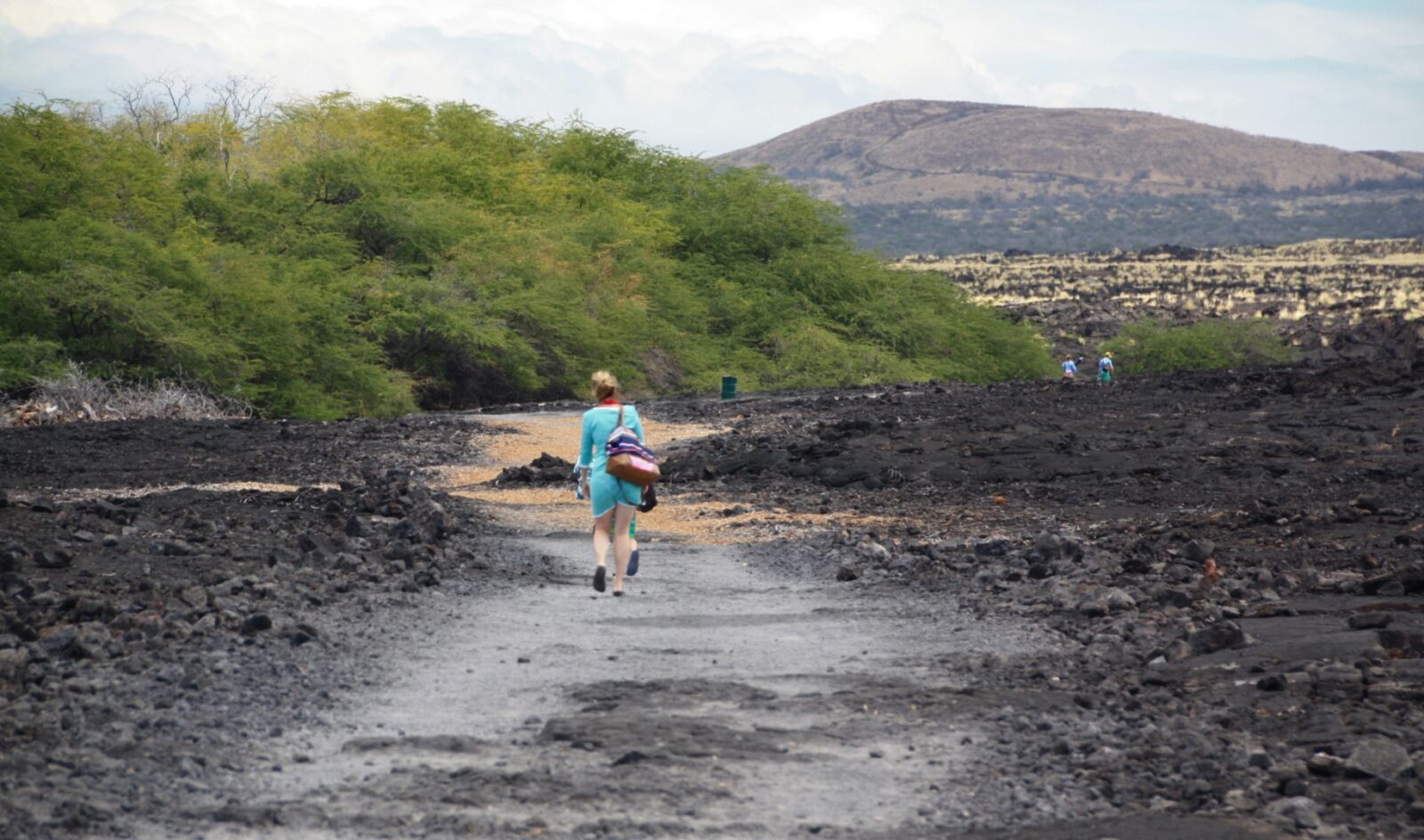 It’s about a one-third mile walk to Red House along a gated road that serves as an access trail. It’s also possible to walk to Red House Beach on the sand (and through a little bit of lava) from Kaelehuluhulu Beach which is also in Kekaha Kai State Park. Kaelehuluhulu Beach is the closest beach to the parking lot at the end of the road. Red House Beach is a pretty easy walk no matter which way you choose to go, but Makalawena Beach is over a mile from the parking area. All three of the beaches are excellent sandy beaches, but the latter two (Red House and Makalawena) are better for swimming and snorkeling and definitely worth the hiking.