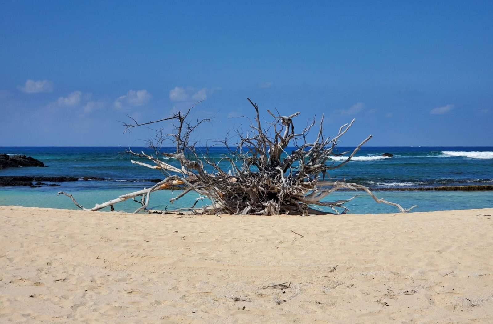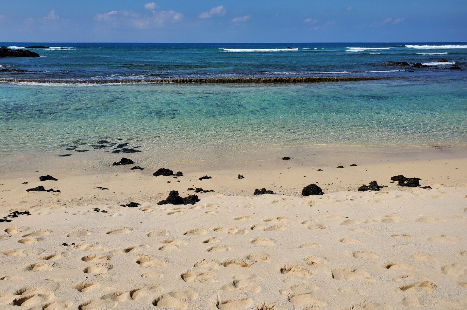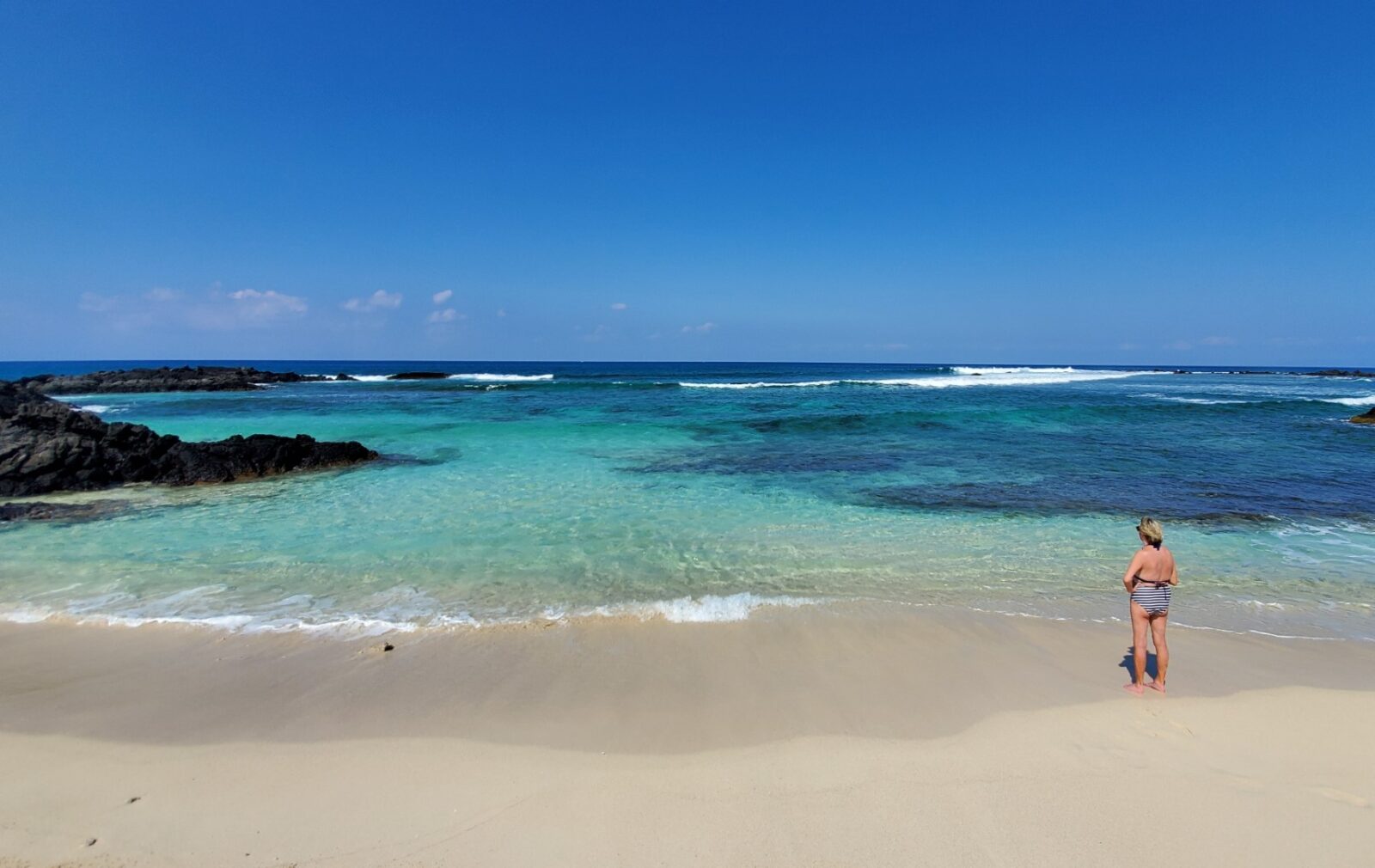 Makalawena Beach is one of those harder to reach beaches on the Big Island, but unlike most of the others, this one gets talked about by out of state visitors. The reason is because this is a truly special beach. It’s worth a walk of about a mile across a dry lava field on loose sharp rocks that absorb heat from the sun. Folks will bring all they need for the day to stay a long time and enjoy this amazing location.