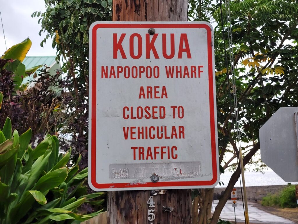 You’ll find Napo’opo’o Wharf at the end of Napoopoo Road south of the town of Captain Cook. The car gate is always closed so you have to park at the parking lot for Napo’opo’o Beach and walk about 500 feet back on the road to the wharf.