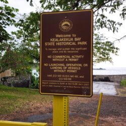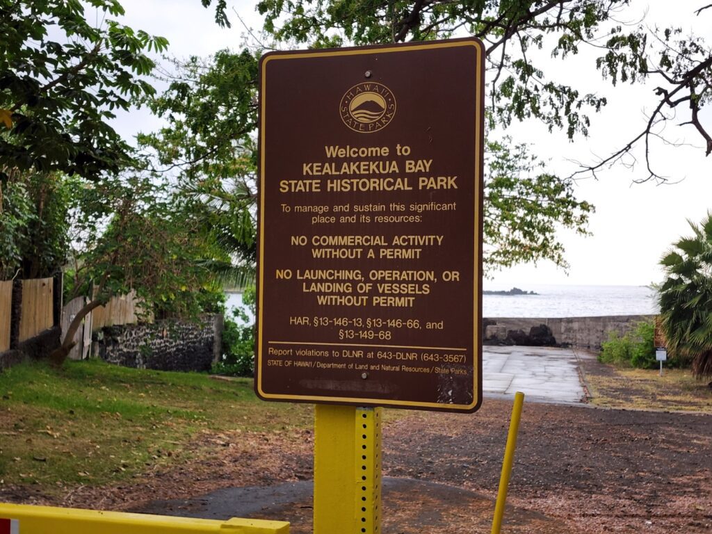 Napo’opo’o Wharf once was a location for docking steamer ships, but today it’s for launching much smaller boats (the hand-carried type). The original wharf was built in 1894 and the existing concrete structure was built in 1912. The wharf was constructed to deliver items to the communities living near Kealakekeua Bay and Honaunau Bay. This spot is most frequently used for viewing Kealakekeua Bay and watching sunsets.
