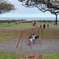 Onekahakaha Beach Park is a popular place for families in Hilo. Swimming, picnicking, tossing a football, and even horseshoes are possible at this park.