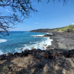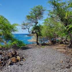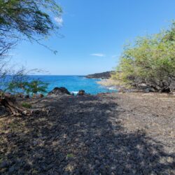 There are two accesses to this beach. One is next to the lot at 88-1598 Ewalu Avenue and the other is next to 88-223 Kai Avenue (both are a Captain Cook address even though the roads are in Miloli’i). The former access has parking space for a few cars. From there it’s about a 200 yard walk downhill to the shoreline.