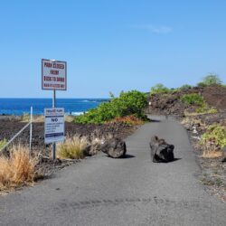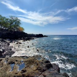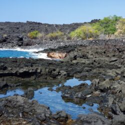 Papa Bay is a hidden sandless shoreline with access from the Miloli’i community. There are no facilities, but if you look around you’ll find tidepools and you might spot historical sites from a former settlement on the bay.