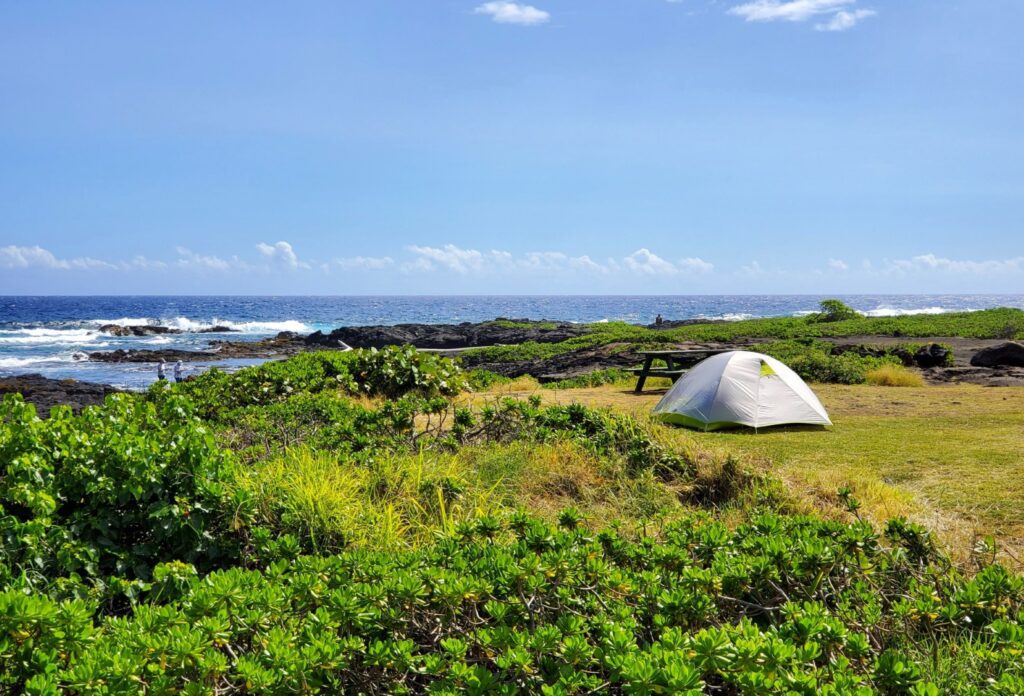 In the area by the boat ramp (east end of the beach) there are historical structures including the massive Punalu’u Nui Heiau (aka Kane’ele’ele Heiau). If you hike around up there, do not disturb walls or rock piles of any type or size as they could be a significant site. The trail that leads up to the heiau keeps going eastward all the way to remote Kamehame Beach (three miles one-way).