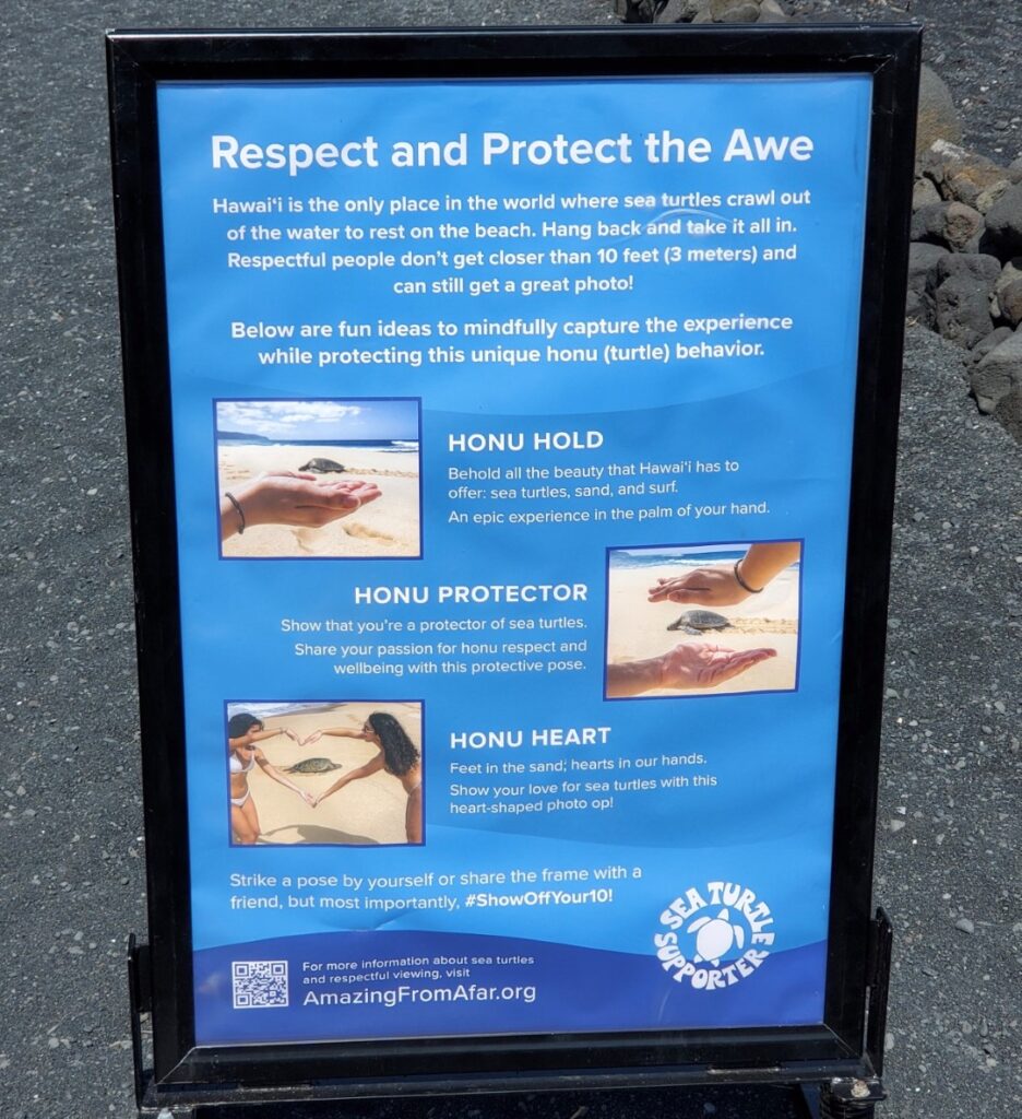 Sea turtles are frequently in the water and on the beach at Punalu’u. Signs make it clear that you shouldn’t approach them, but you can take pictures from about 10 feet away.