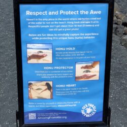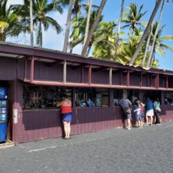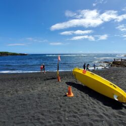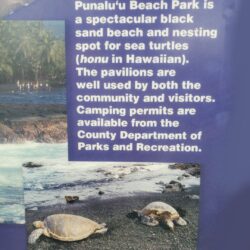 Swimming can be dangerous at Punalu’u due to rip currents. If you do swim, look out for turtles and stay back from them – a mask helps to see where they are. Note that the top layers of the water might seem colder as the freshwater from nearby springs seeps into the bay. Lifeguards are sometimes provided on busy weekend days, but don’t count on them being present when you get there. There’s a stand with souvenirs and a few snacks that might be open on weekends.