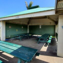 Punalu’u Beach Park has two parking lots, one at each end of the beach. The south lot is next to the restrooms and picnic areas. The north lot is near the stand and the pond. Creepy abandoned buildings behind the north end of the beach are from a restaurant that was closed down a few years back.