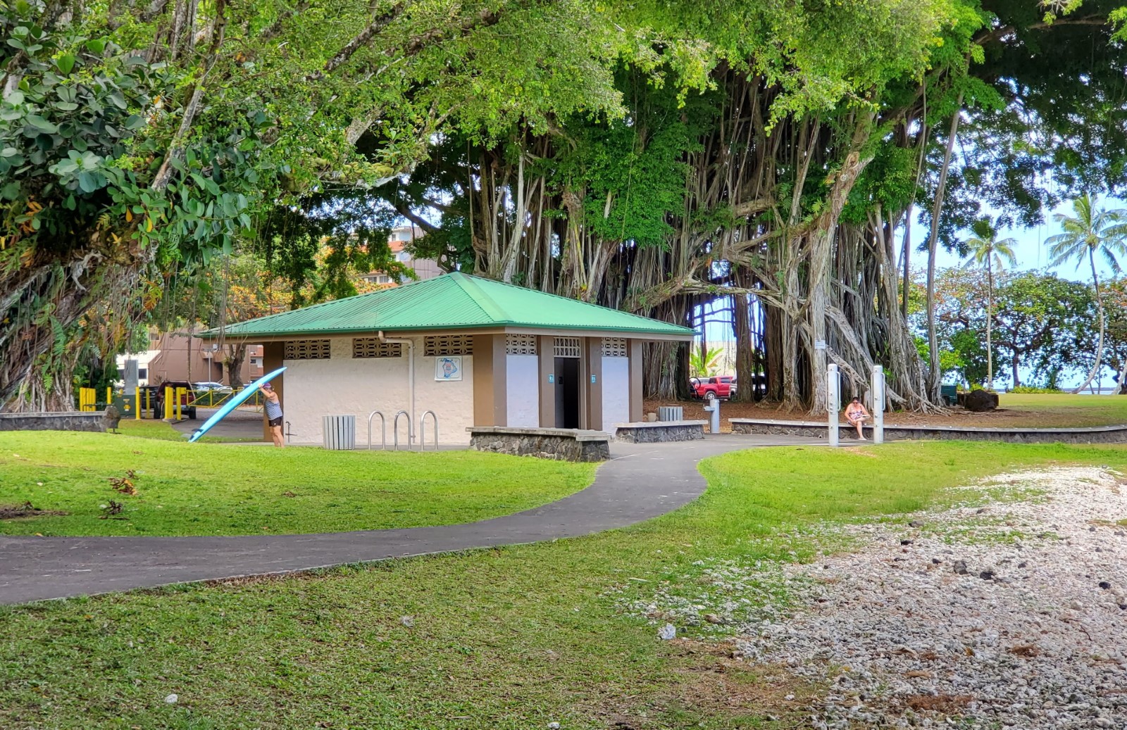 Naniloa Golf Course is a nine hole public course located behind the park. Liliuokalani Gardens Park is also nearby and highly recommended.