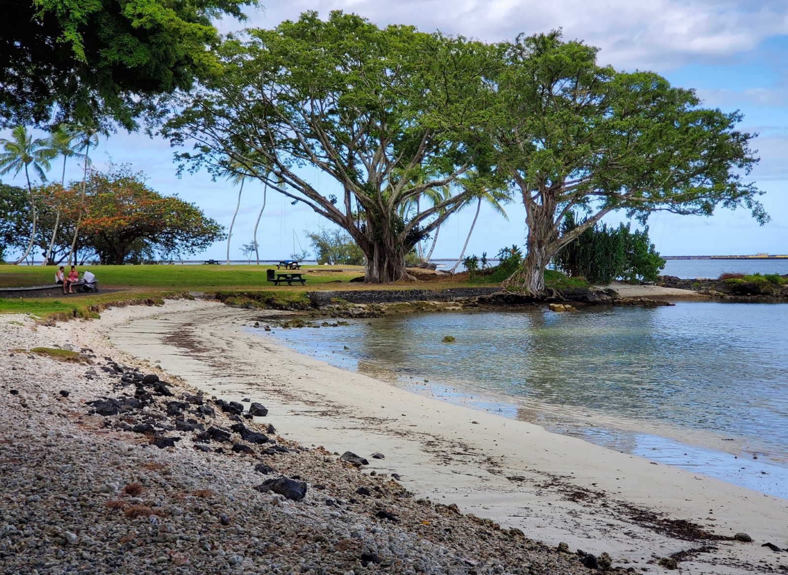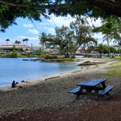 Reeds Bay Beach Park in Hilo has a couple small sandy beaches that are good for keikis (kids) and are popular with local families. This linear park and its beaches face east so it doesn’t get much sun in the mornings, but it’s a pleasant place later in the day.