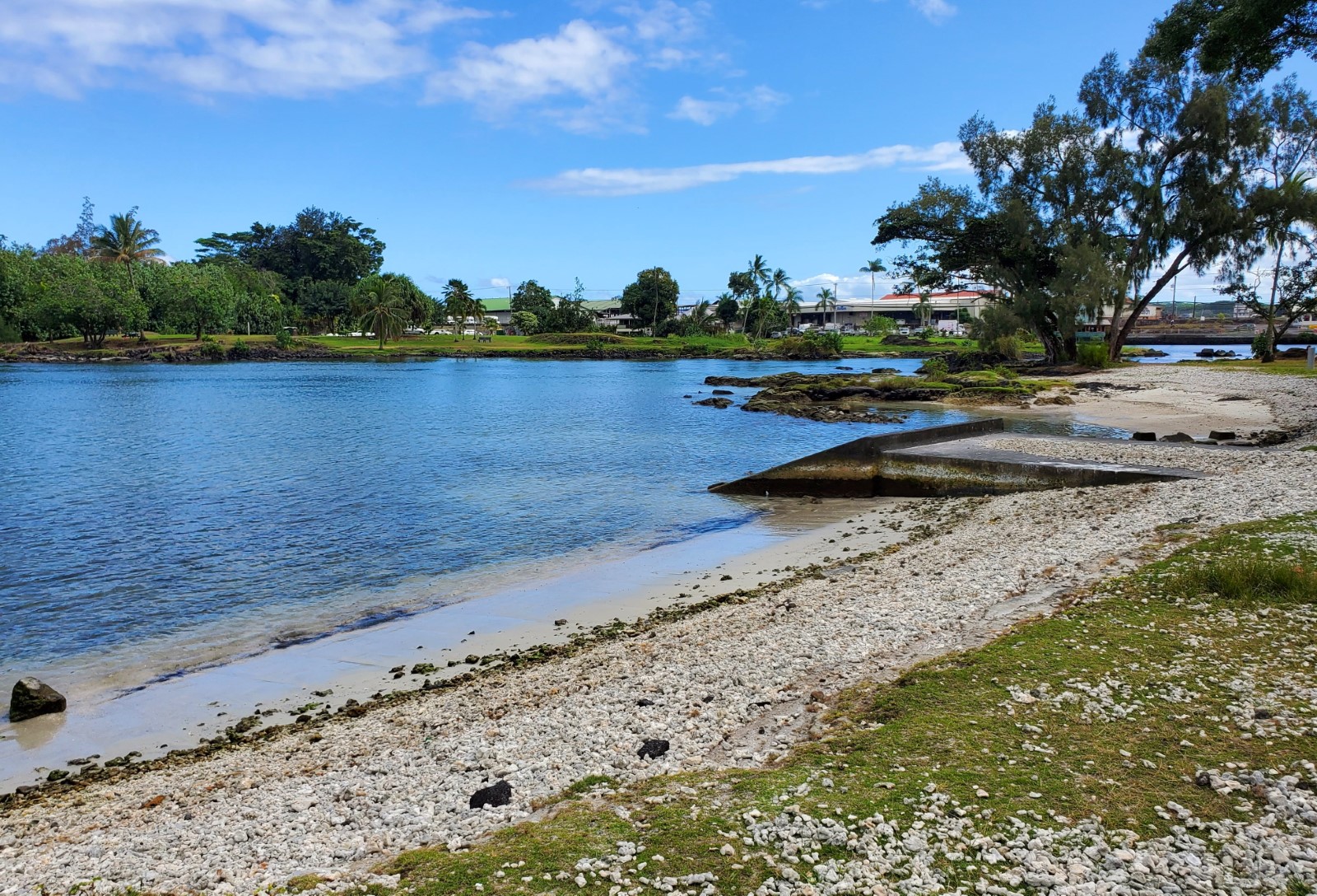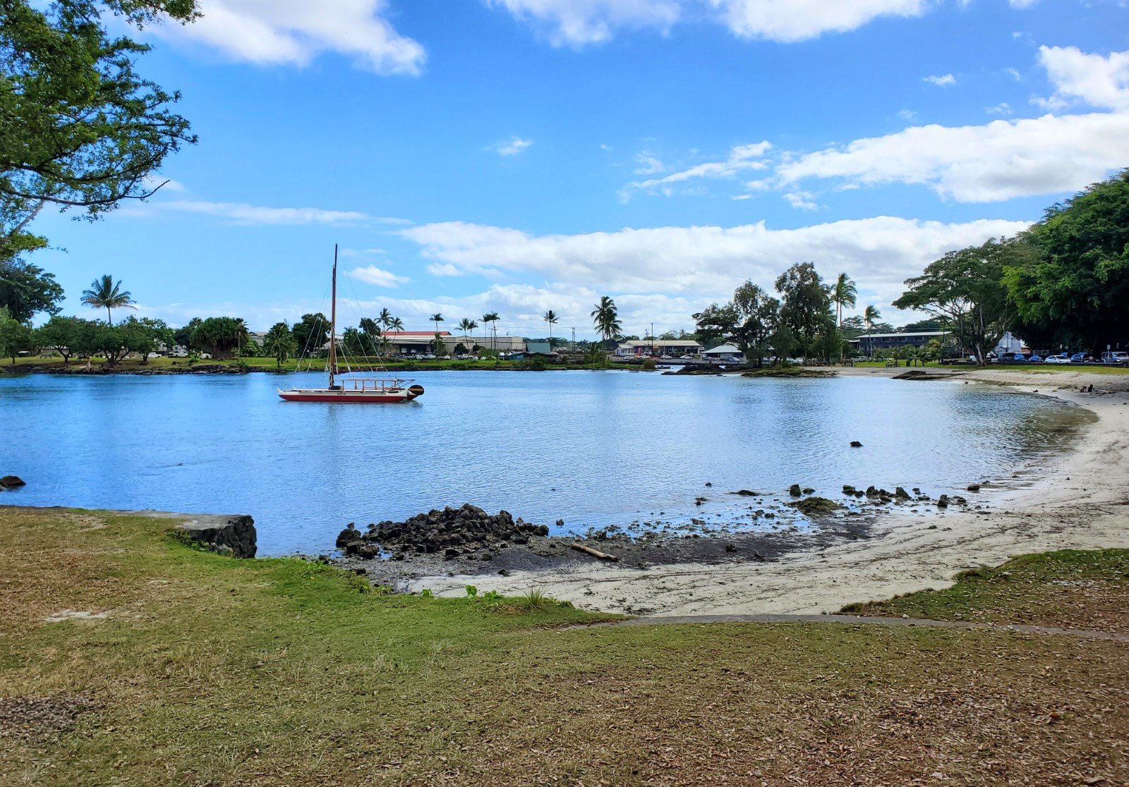 Reeds Bay is protected from waves by the Hilo Harbor Breakwater so swimming and water activities like stand-up paddleboarding are ideal. Little lava rock islands and points are all around so bring water shoes if you want to explore them. The beaches here are a mix of coral, sand and lava rocks, but at least this park has beaches which are rare on the Hilo side of the Big Island.