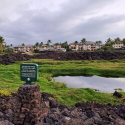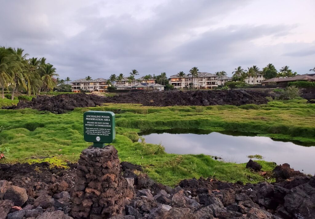The path to the shoreline from the public parking lot goes through Waikoloa Anchialine Pond Preservation Area which has interpretive signs explaining their significance.