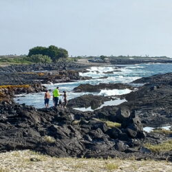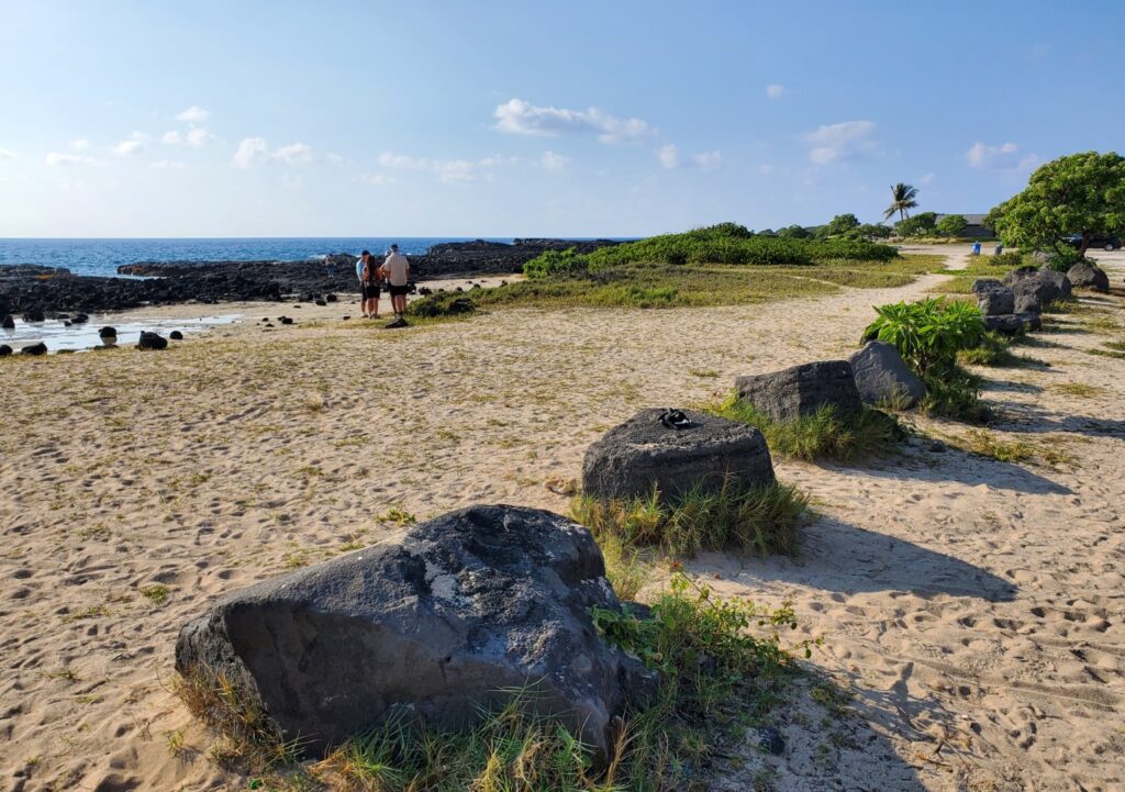 This is a great place to get out and walk around. An excellent trail meanders along the shore northward to Keohole Point where you can see both industrial and historic Hawaiian structures. A rugged road to the south of Wawaloli Beach leads into O’oma Beach Park where better swimming entries can be found.