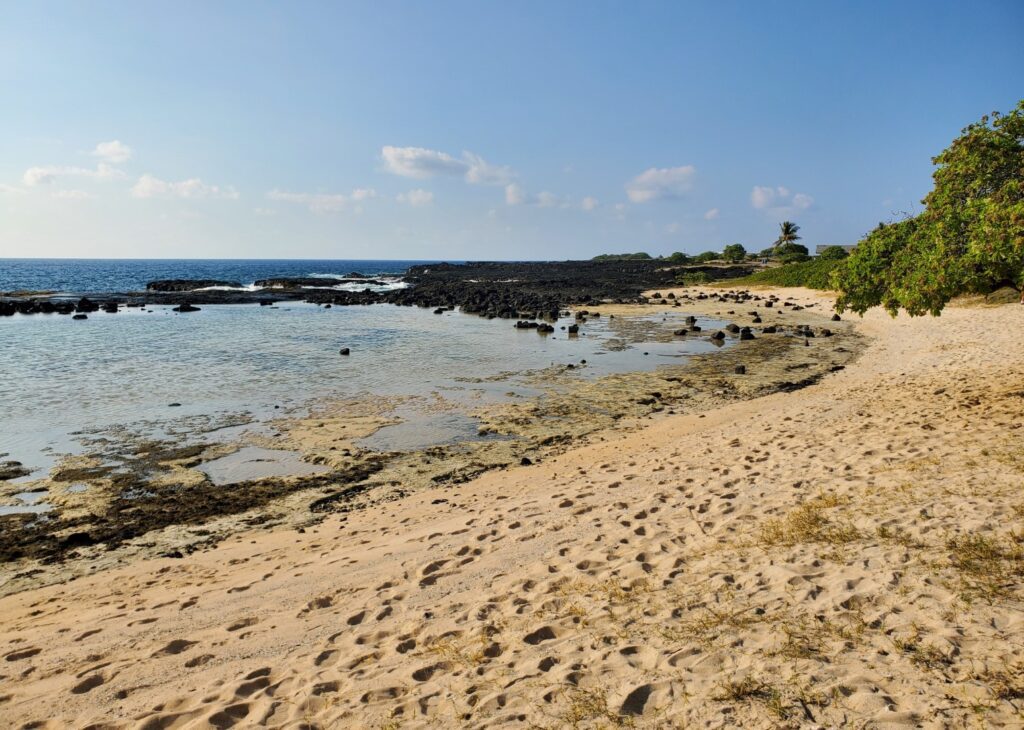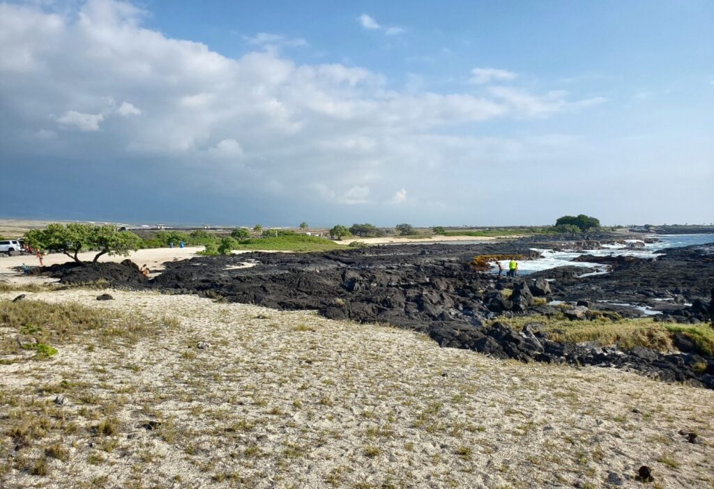 Wawaloli Beach Park lacks a sandy beach with easy access to the water, but it does have some sand and you can still cool off in the water. This park isn’t usually busy, but it does attract locals who want to play in the small pools between the lava rocks at the shoreline. Some of these pools are great for soaking and others are extensive tide pools where you can look for marine critters who live in them.